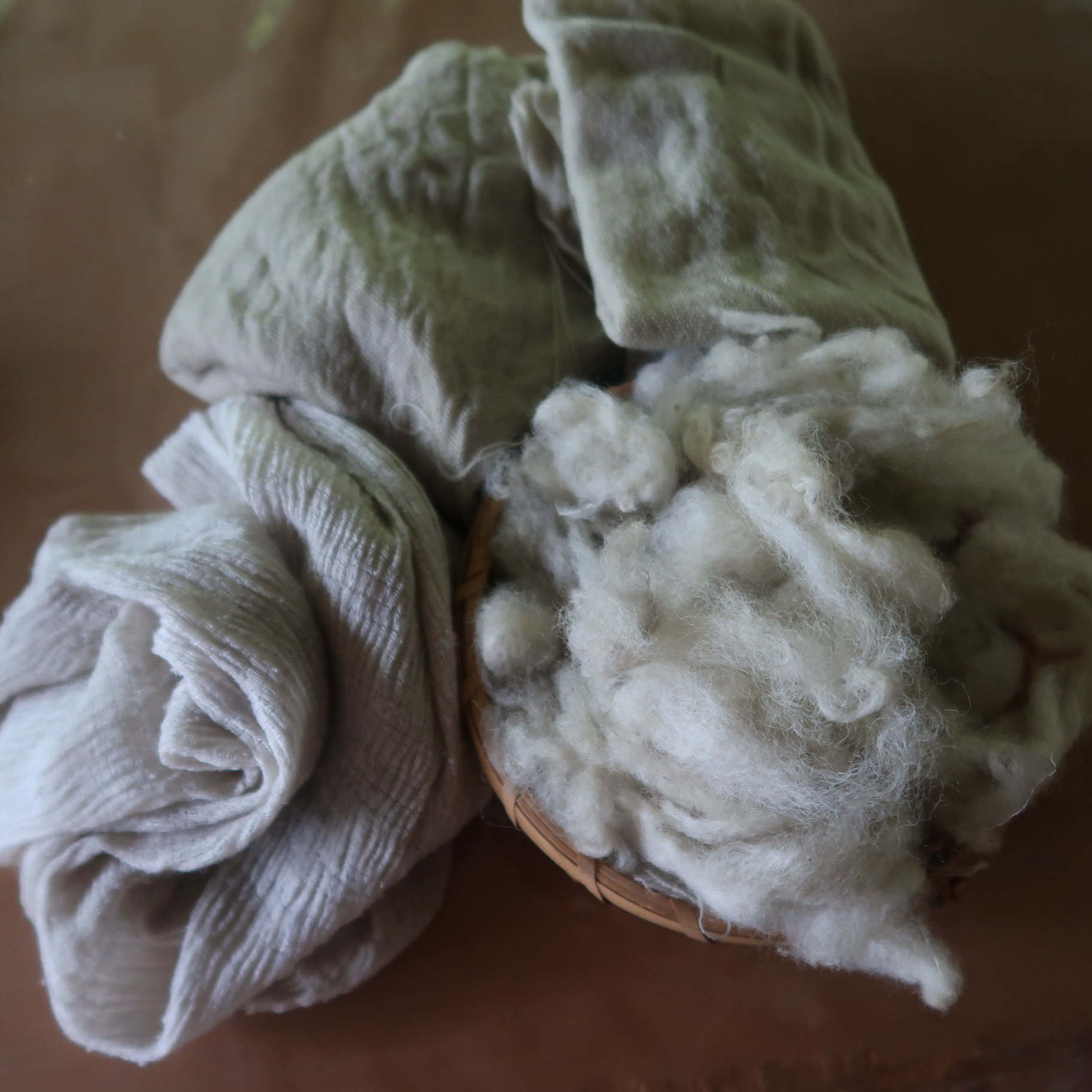 咲き終わった小菊の葉と茎で染めました。わりと手軽なので、