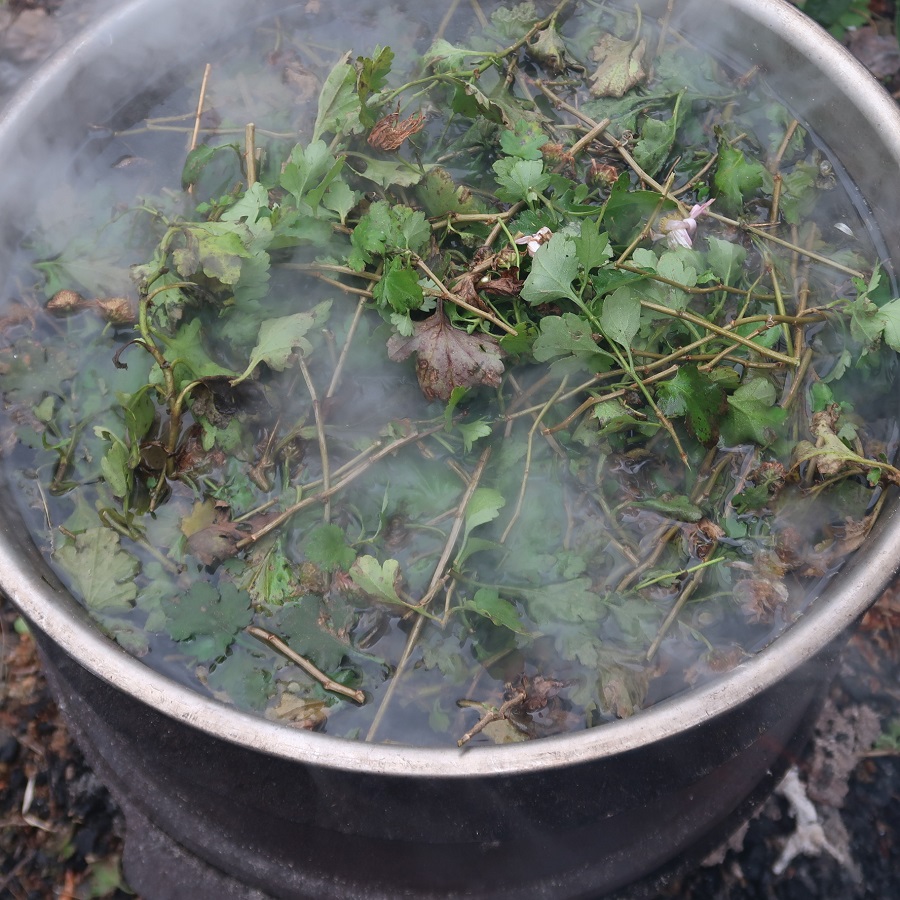 栃樹皮の煮出し